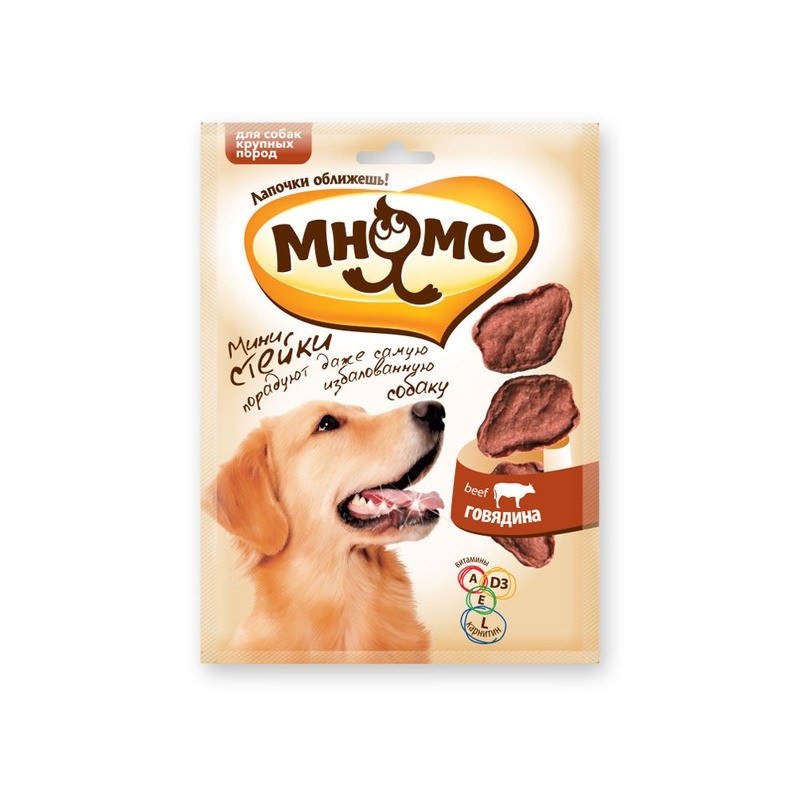 Мнямс лакомство Стейки с говядиной для собак крупных пород - 75 г