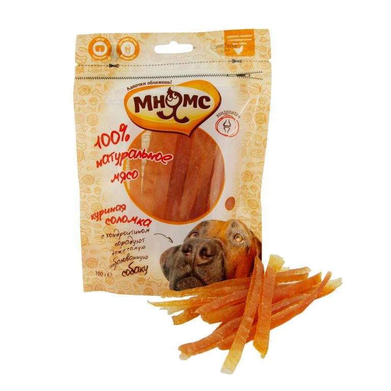Мнямс лакомство для собак куриная соломка с хондроитином 100 г