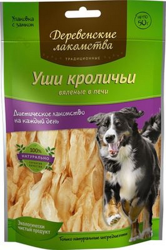 ДЕРЕВЕНСКИЕ ЛАКОМСТВА "Традиционные" Уши кроличьи вяленые в печи для собак 50 гр