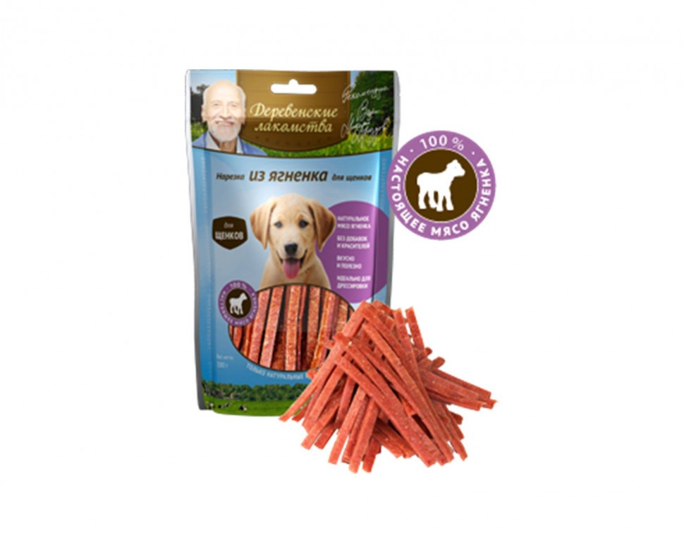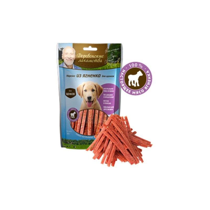 ДЕРЕВЕНСКИЕ ЛАКОМСТВА 100 % Мяса Нарезка из ягненка для щенков 90 гр
