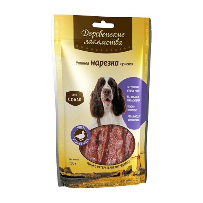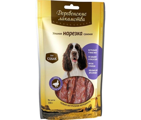 ДЕРЕВЕНСКИЕ ЛАКОМСТВА 100 % Мяса Утиная нарезка сушеная для собак 90 гр