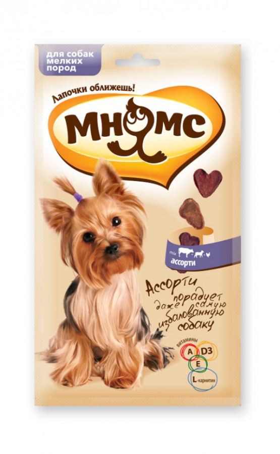 Мнямс лакомство Ассорти с говядиной, ягненком и курицей для собак мелких пород - 60 г