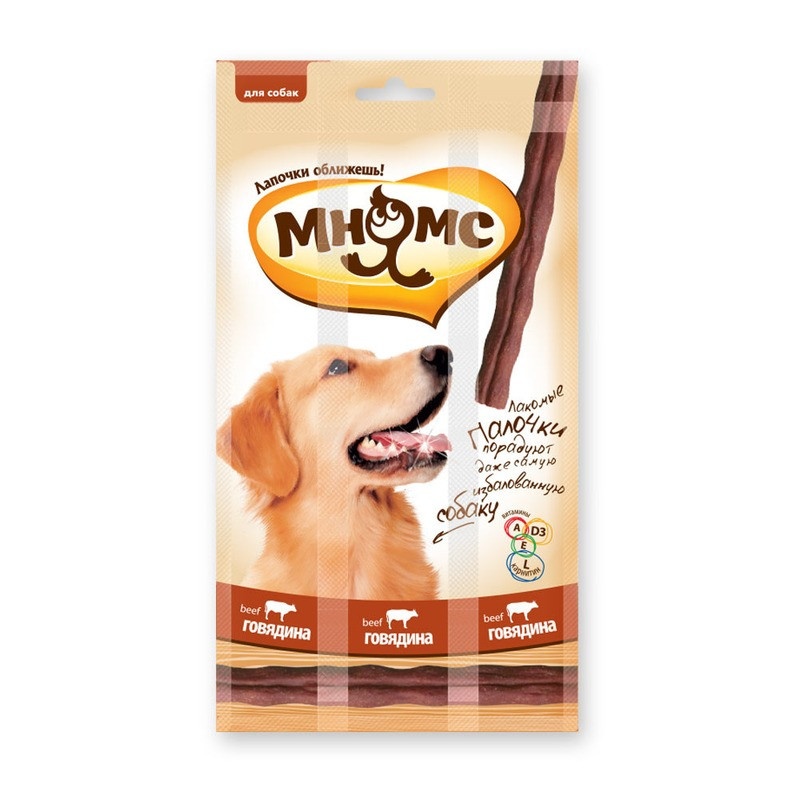Лакомые палочки «Мнямс»- это вкусное и здоровое угощение для собак с большим содержанием мяса, которое придется по вкусу даже самому капризному любимцу.