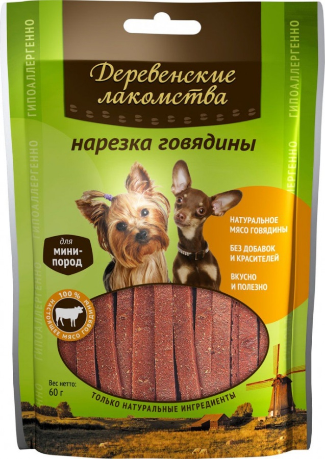 ДЕРЕВЕНСКИЕ ЛАКОМСТВА для мини-пород Нарезка говядины 55 гр