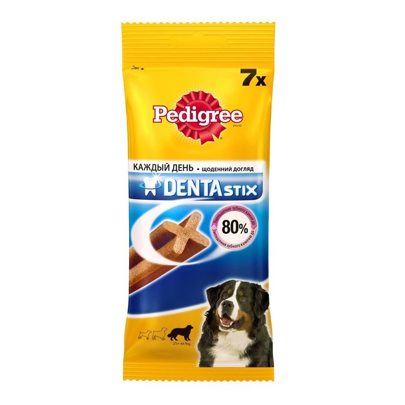 Это полезное лакомство от Pedigree® заботится о состоянии полости рта вашей собаки, для ее долгой и здоровой жизни. X-образная форма и особая текстура Denta Stix от Pedigree® помогают эффективно очищать зубы и массировать десны собаки, а слюна, которая выделяется при жевании, удаляет остатки пищи. Сульфат цинка, в составе Denta Stix от Pedigree®, замедляет формирование зубного камня и позволяет легко удалить его во время жевания, а триполифосфат натрия не позволяет кальцию откладываться на зубах.