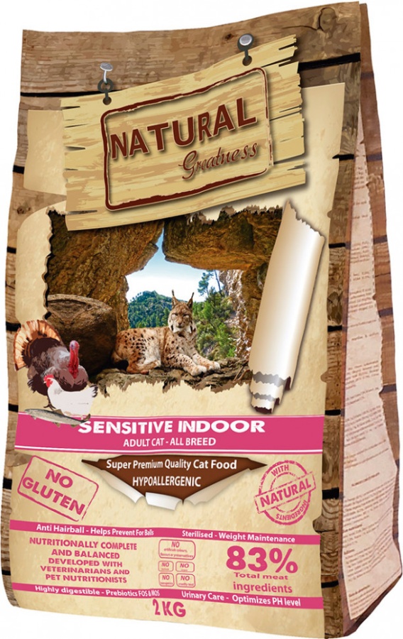 Natural Greatness Sensetive Indoor Recipe сухой корм для взрослых кошек с индейкой и курицей - 2 кг