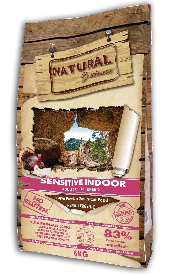 Natural Greatness Sensetive Indoor Recipe сухой корм для взрослых кошек с индейкой и курицей - 18 кг