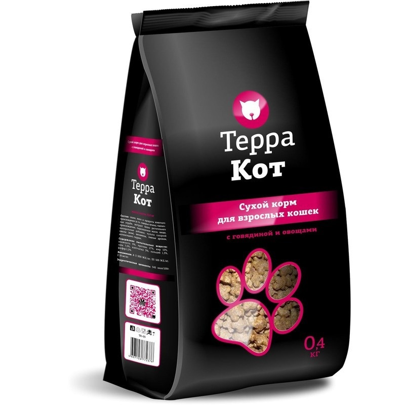 Терра Кот сухой корм для взрослых кошек всех пород с говядиной и овощами - 400 г