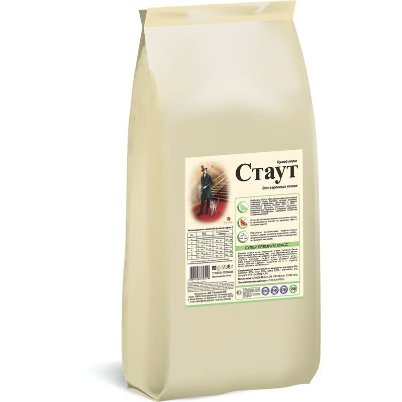 Стаут сухой корм для взрослых кошек всех пород с цыпленком и рисом - 15 кг