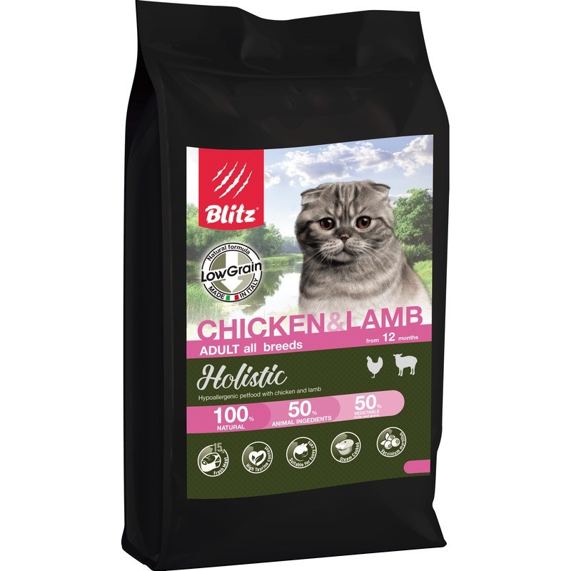 Blitz Holistic Cat Adult низкозерновой корм для взрослых кошек с курицей и ягненком - 5 кг