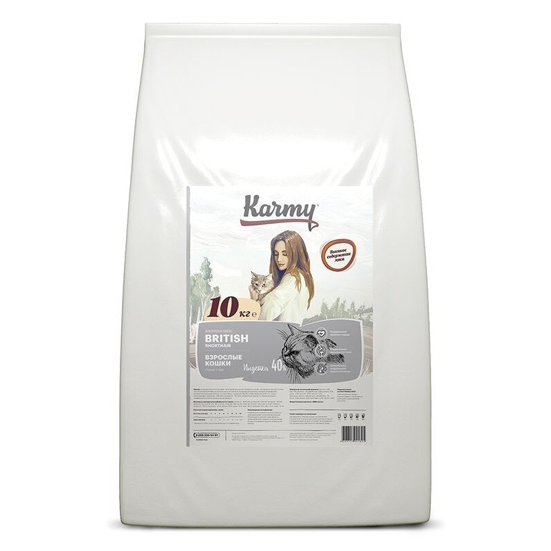 Karmy British shorthair – сухой корм для взрослых кошек породы Британская короткошерстная старше 1 года. Преимущества: Ингредиенты: Витамины и минеральные добавки на 1 кг корма: Показатели питательной ценности: Энергетическая ценность: 3885 ккал/кг.