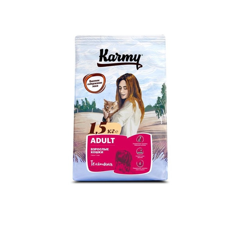 Сухой корм Karmy Adult для взрослых кошек с телятиной 1.5 кг