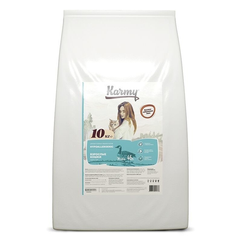 Сухой корм Karmy Hipoallergenic для взрослых кошек при пищевой аллергии c уткой 1.5 кг