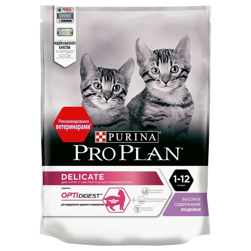 Сухой корм Purina Pro Plan Delicate для котят с чувствительным пищеварением с индейкой - 200 г