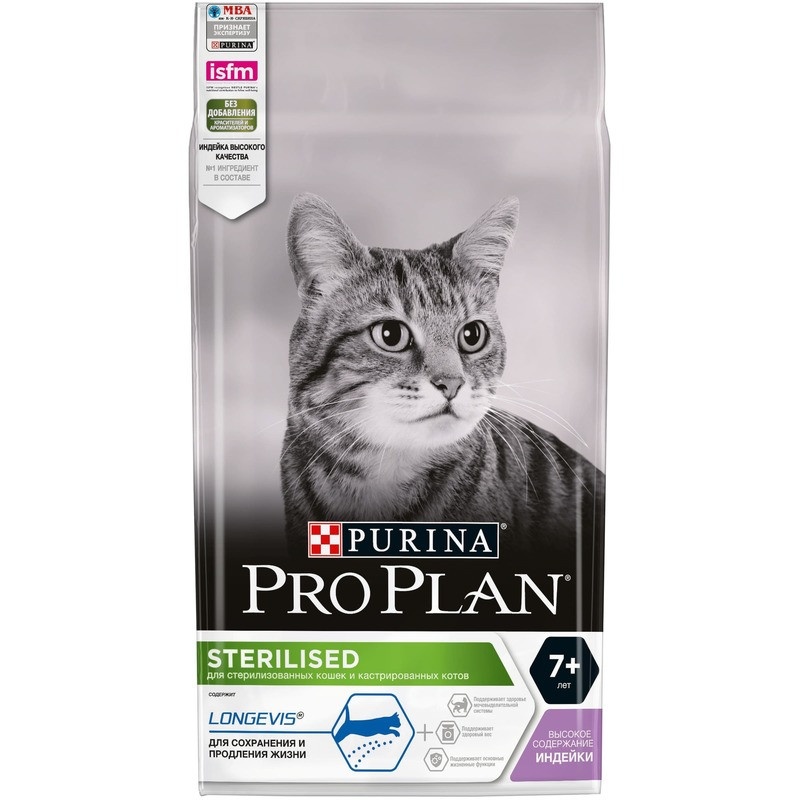 Сухой корм Pro Plan Cat Senior 7+ Sterilised для стерилизованных кошек старше 7 лет с индейкой - 1,5 кг