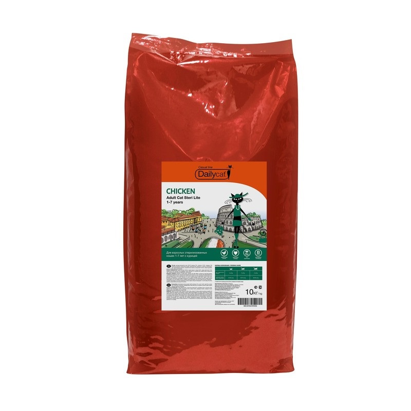 Dailycat Casual Line Adult Steri Lite Chicken корм для стерилизованных кошек с курицей 10 кг