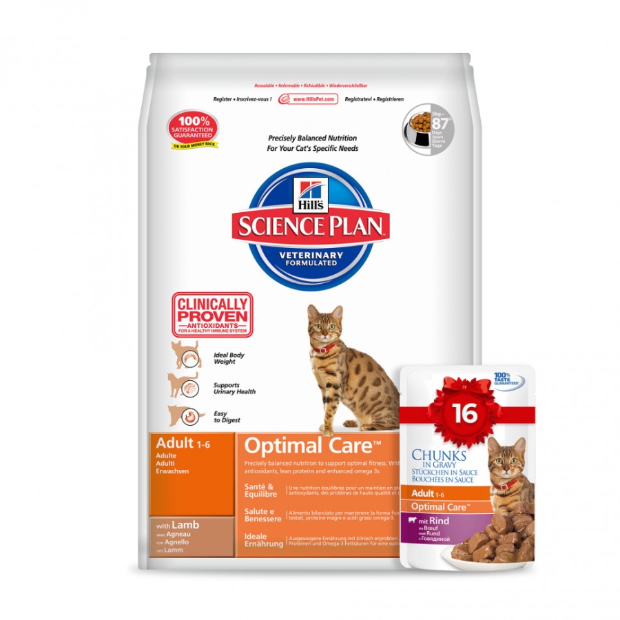 Hill's Science Plan Optimal Care сухой корм для взрослых кошек с ягненком - 10 кг
