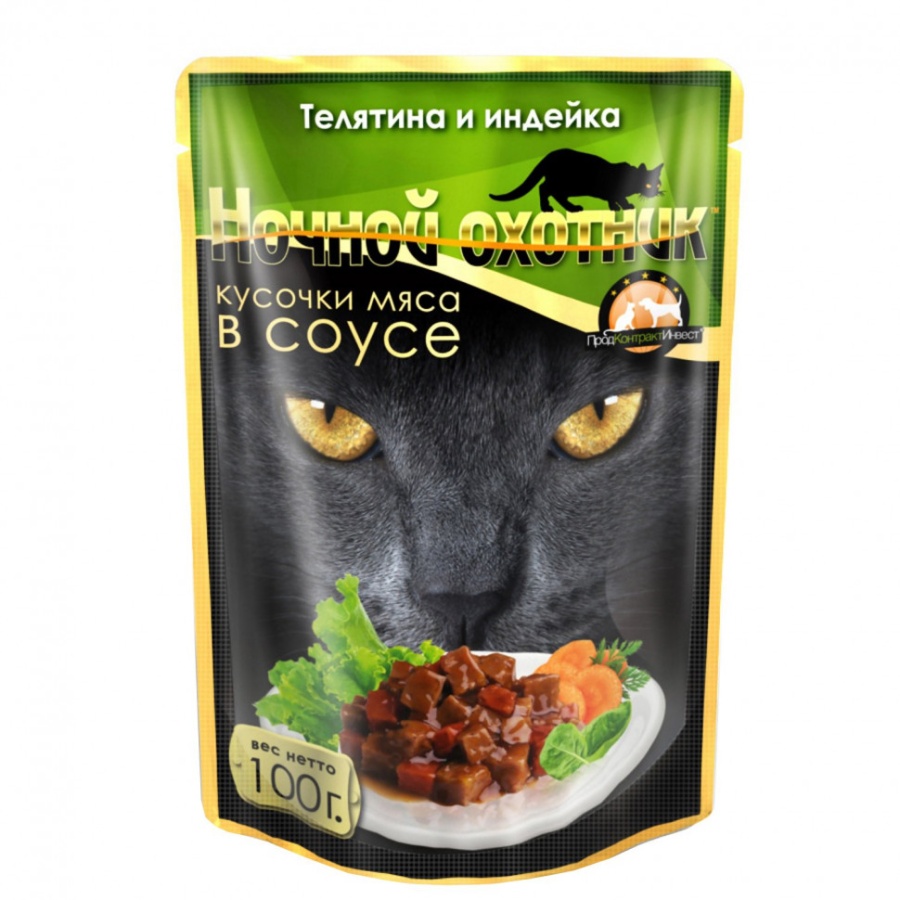Ночной охотник паучи для кошек Телятина и индейка в соусе 100г