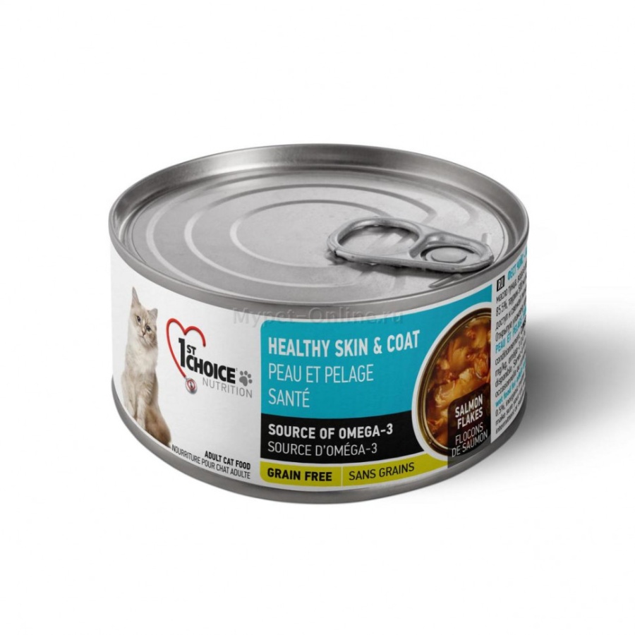 1st Choice Healthy Skin and Coat Лосось в масле тунца (Консервы для взрослых кошек для кожи и шерсти), 85 г