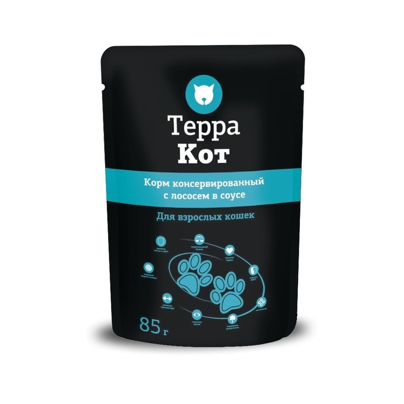 Терра Кот влажный корм для взрослых кошек всех пород с лососем в соусе - 85 г