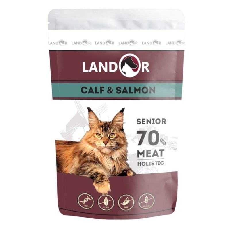 Landor влажный корм для пожилых кошек с телятиной с лососем в паучах - 85 г