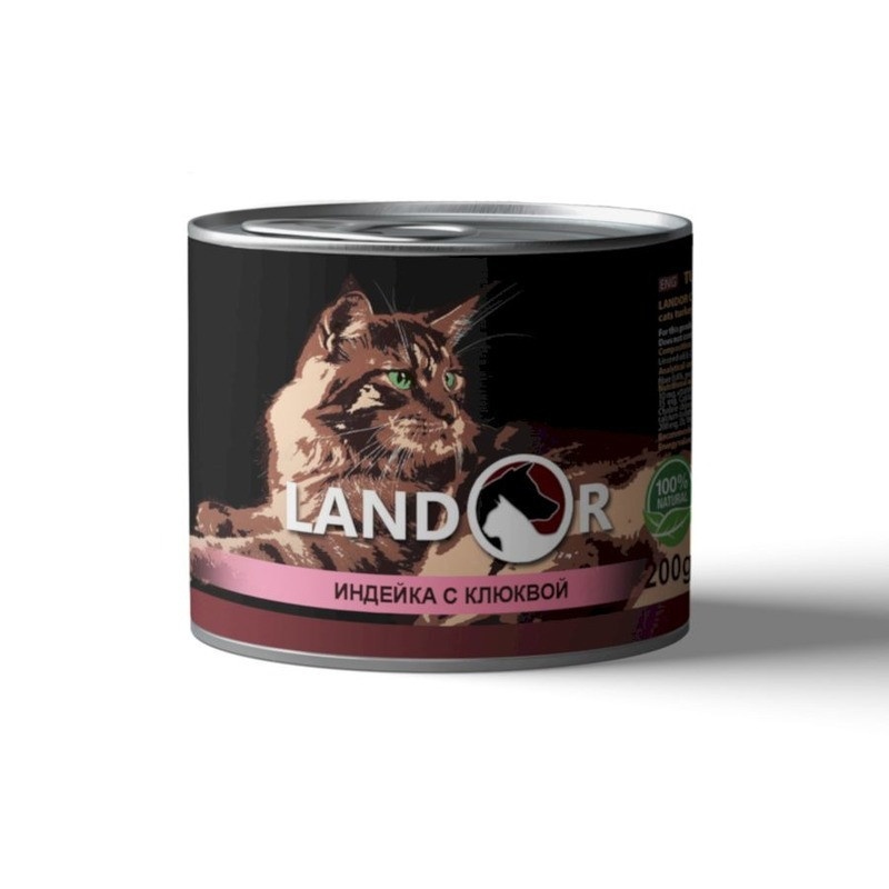 Landor влажный корм для стерилизованных кошек с индейкой и клюквой в консервах - 200 г