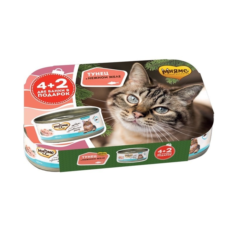 Мнямс Новогодний набор консервы для кошек тунец в нежном желе 4+2