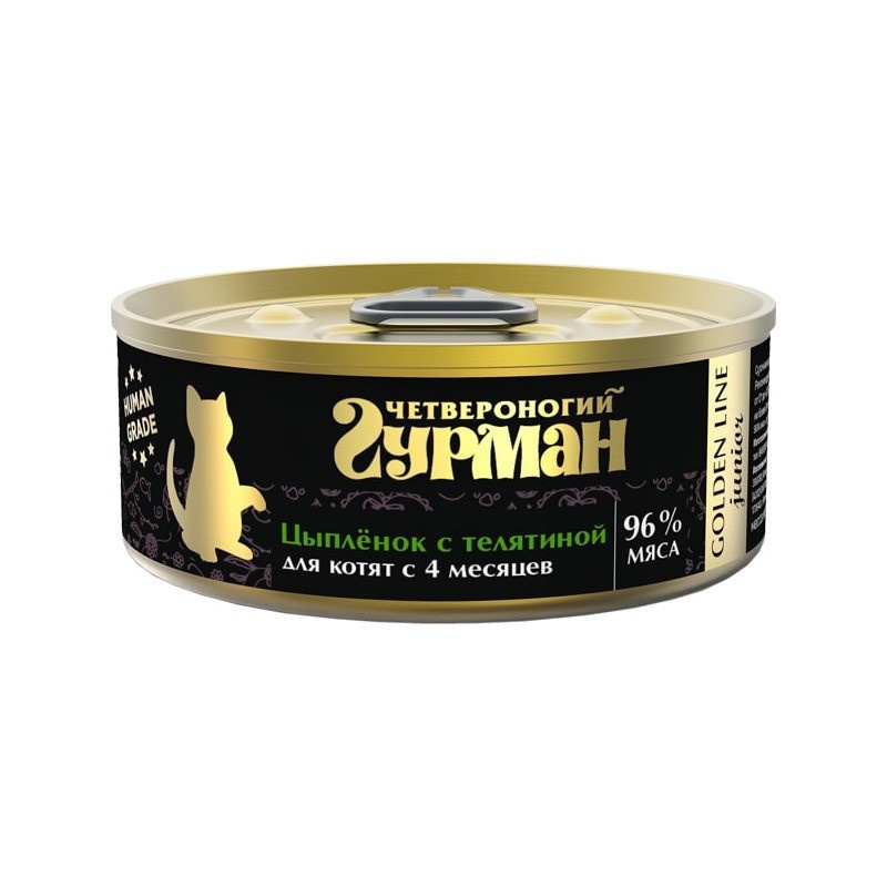 Четвероногий Гурман Golden line полноценное консервированное питание супер-премиум класса с цыпленком и телятиной в желе для котят - 100 г