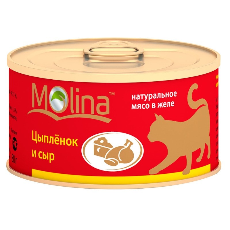 Влажный корм Molina для взрослых кошек с цыпленком и сыром в желе в консервах - 80 г