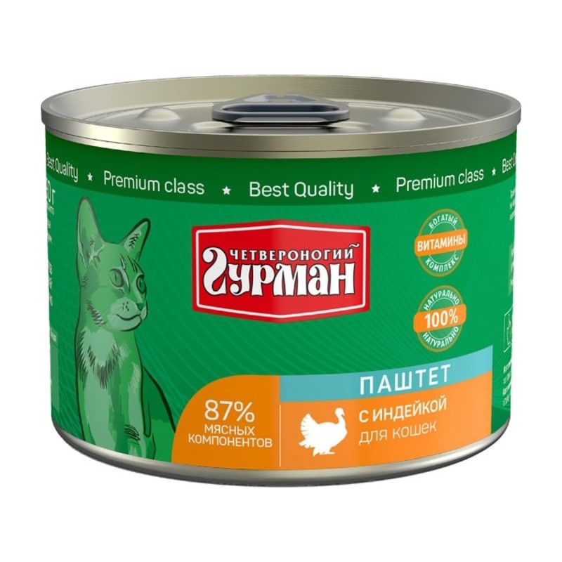 Влажный корм Четвероногий Гурман паштет для кошек с индейкой - 190 г