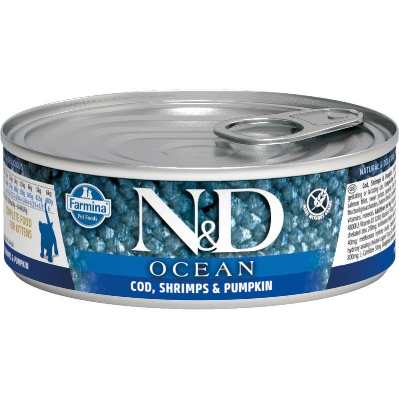 Влажный корм Farmina N&D Ocean для котят с треской, креветками и тыквой - 80 г