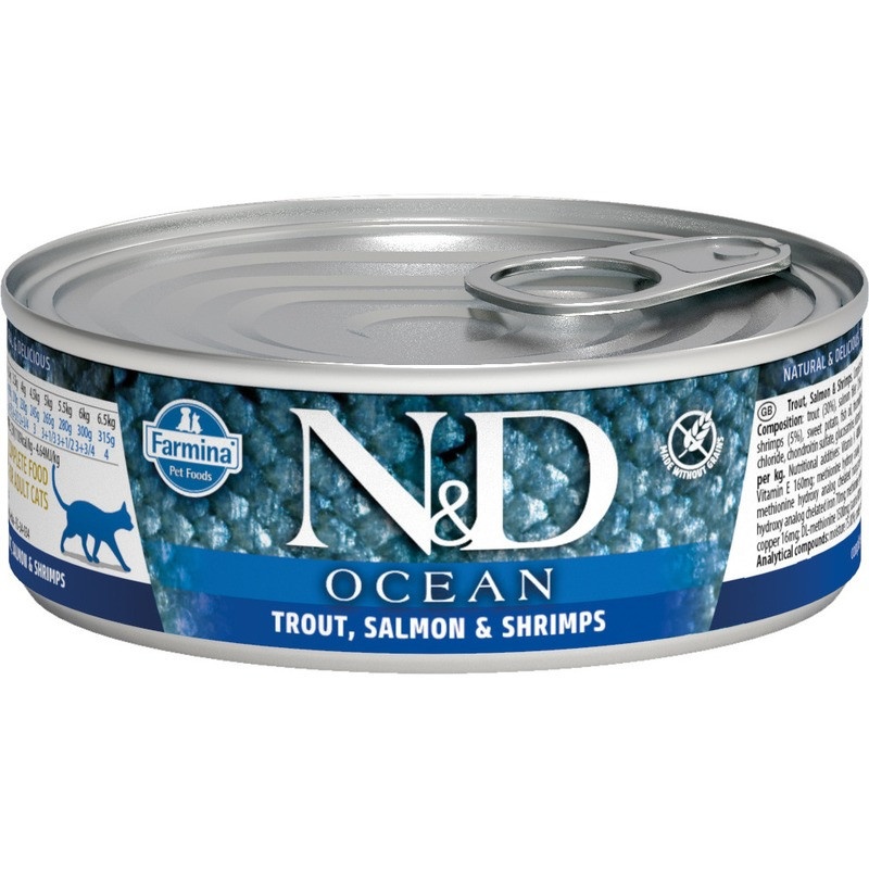Влажный корм Farmina N&D Ocean для взрослых кошек с форелью, лососем и креветками - 80 г