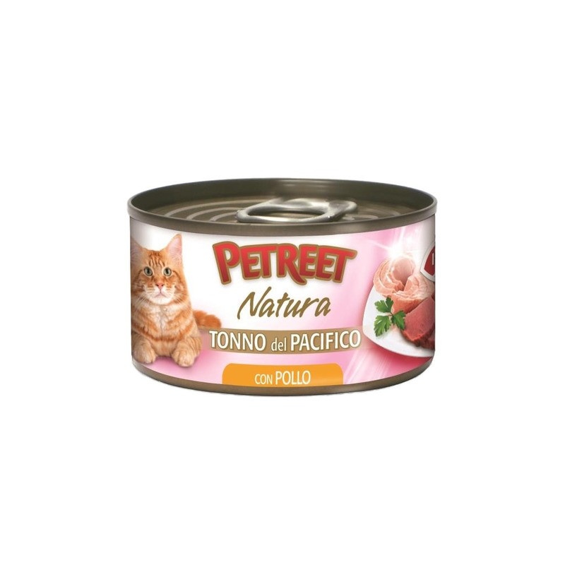 Влажный корм Petreet для взрослых кошек с кусочками тихоокеанского тунца и курицы в рыбном бульоне - 70 г