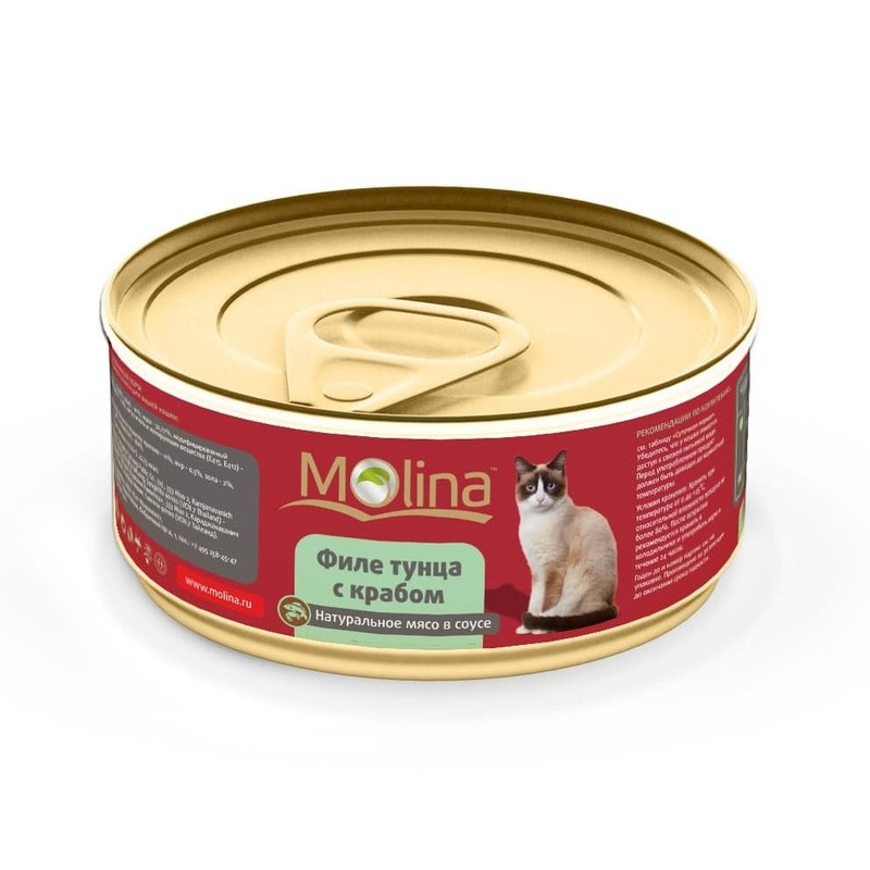 Влажный корм Molina для взрослых кошек с филе тунца и крабом в соусе в консервах - 80 г