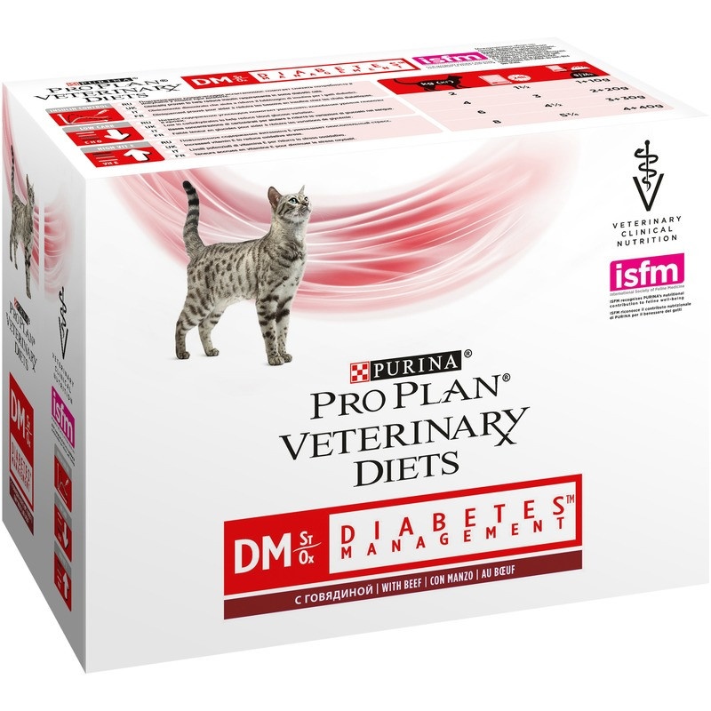 Purina® Pro Plan® Veterinary diets® DM - полнорационный влажный диетический корм для взрослых кошек при диабете в паучах. Корм рекомендуется для регулирования потребления глюкозы. Преимущества: Инновационная линейка корма PURINA® VETERINARY DIETS™ разрабатывалась с учетом рекомендаций ведущих ветеринарных врачей и ученых, специализирующихся в области питания, молекулярной биологии, диетологической биохимии, микробиологии и иммунологии, а также в сфере изучения липидного и протеинового метаболизма.