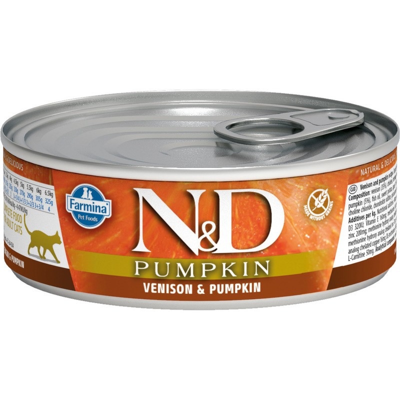 Влажный корм Farmina N&D для взрослых кошек с тыквой и олениной - 80 г