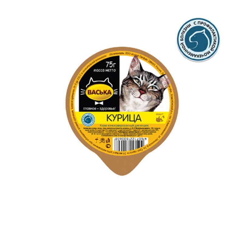 Влажный корм Васька для кошек для профилактики МКБ с курицей - 75 г