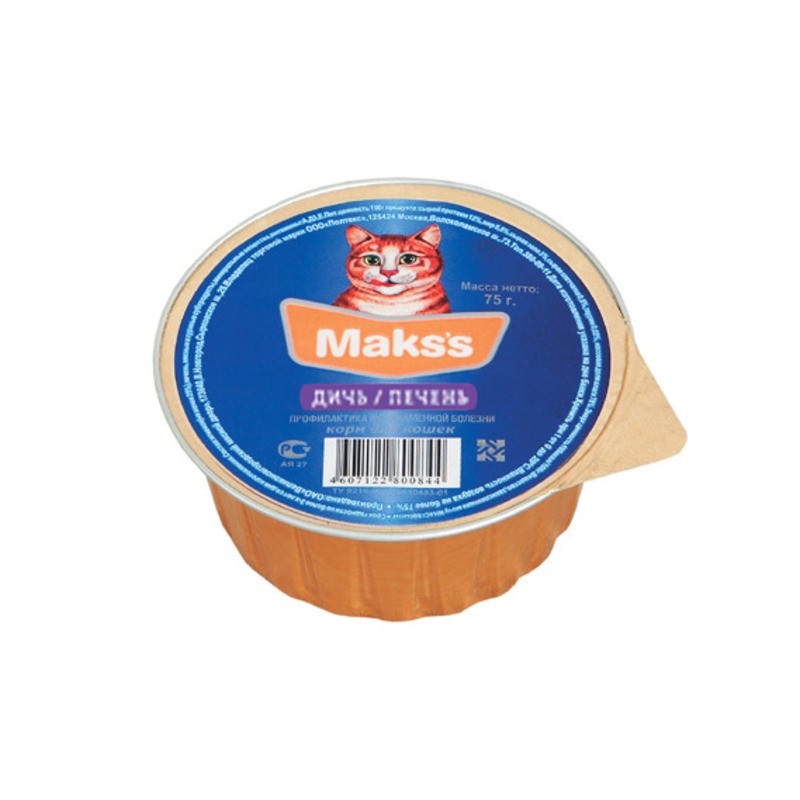 Влажный корм Maks's для кошек с дичью и печенью - 75 г