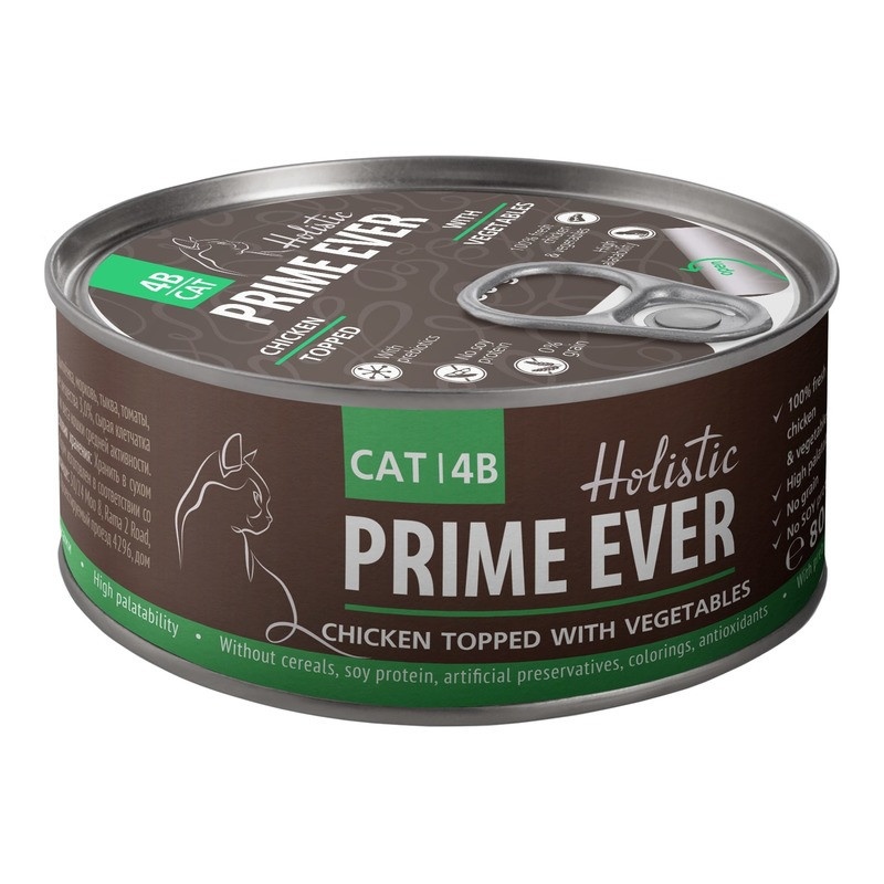 Prime Ever влажный корм для взрослых кошек с цыпленком и овощами в желе - 80 г