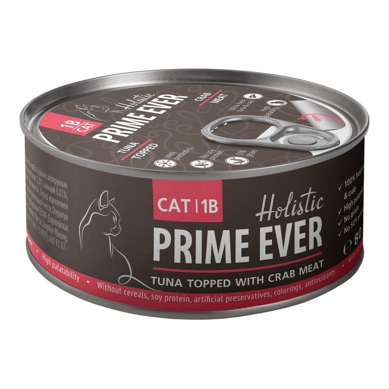 Prime Ever влажный корм для взрослых кошек с тунцом и крабом в желе - 80 г