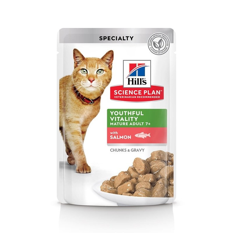 То, что ваш кот или кошка становится старше, не означает, что он/она перестает играть. Корм для кошек Hill's Science Plan Youthful Vitality - это сбалансированное питание, помогающее бороться с признаками старения у взрослой кошки старше 7 лет.Запатентованная формула корма разработана с использованием высококачественных ингредиентов, помогающих поддерживать функцию мозга пожилых кошек, активность, заинтересованность в общении и общий уровень жизненной энергии. Легко усваиваемые ингредиенты способствуют пищеварению пожилых кошек, а Омега-3 и -6 жирные кислоты и Витамин Е питают кожу взрослой кошки и обеспечиваютздоровую и блестящую шерсть.