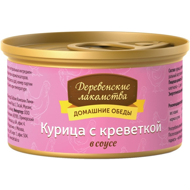 Деревенские лакомства влажный корм для кошек с курицей и креветкой в соусе - 80 г
