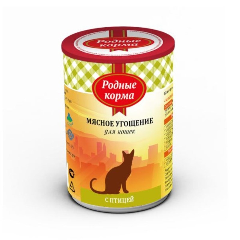 Родные корма Мясное угощение с Птицей консервы для кошек 340 г