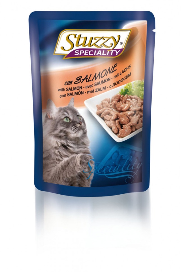 Полнорационные корма Stuzzy Speciality для кошек созданы итальянской компанией Agras Delic, которая имеет более 25 лет опыта в области разработки и производства кормов для животных. Новая линия полнорационных кормов Stuzzy Speciality для кошек - это 6 вкусов для кошек и 4 для собак без содержания красителей и консервантов. Нежные кусочки мяса - кролика, курицы, телятины рыбы - трески, для собак и такие же нежные кусочки мяса - кролика, телятины, курицы, говядины рыбы - трески и лосося для кошек специально приготовленные на пару для придания им наибольшей усвояемости и заманчивого вкуса. Все десять рецептов корма обогащены таурином и витамином Е для поддержания правильной работы сердца и имунной системы. А также инулином, способствующим всасыванию питательных веществ и биотином, делающим шерсть блестящей и шелковистой и поддерживающим здоровое состояние кожных покровов. Состав: Мясо и мясные субпродукты, рыба и рыбные субпродукты (из них лосося 6%), продукты растительного происхождения (из них инулина 0,4%), минералы. Анализ: