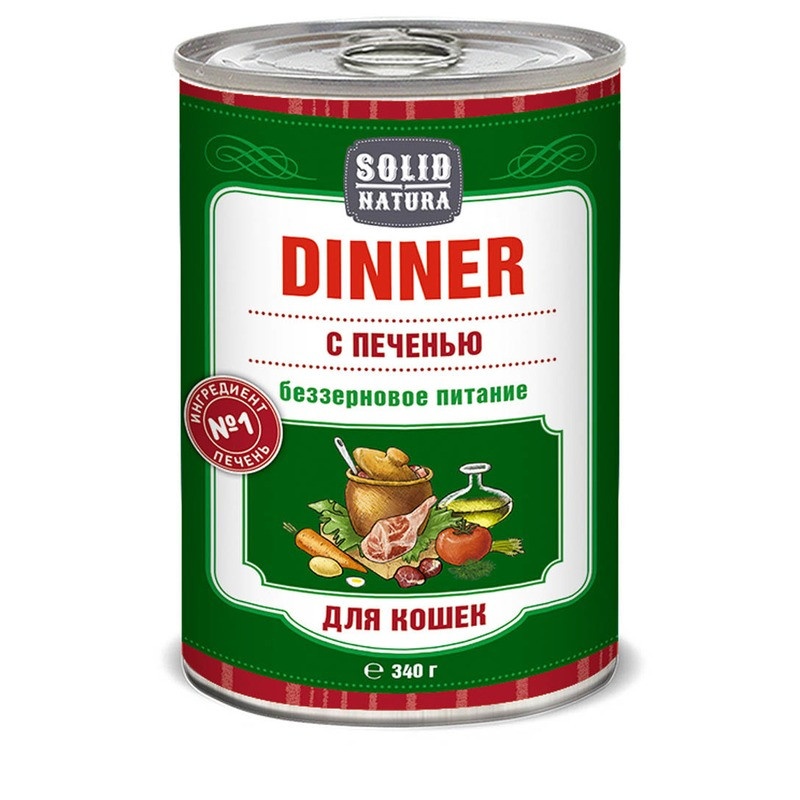Solid Natura Dinner Печень влажный корм для кошек в жестяной банке 340 г