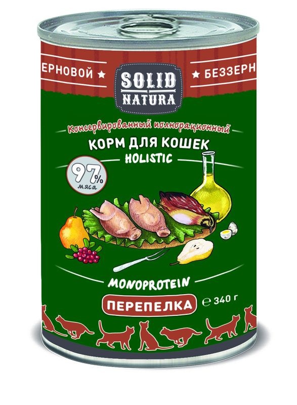Solid Natura Holistic с перепелкой для кошек 340 г