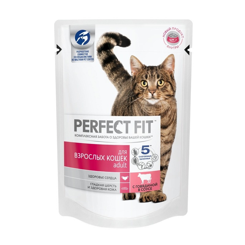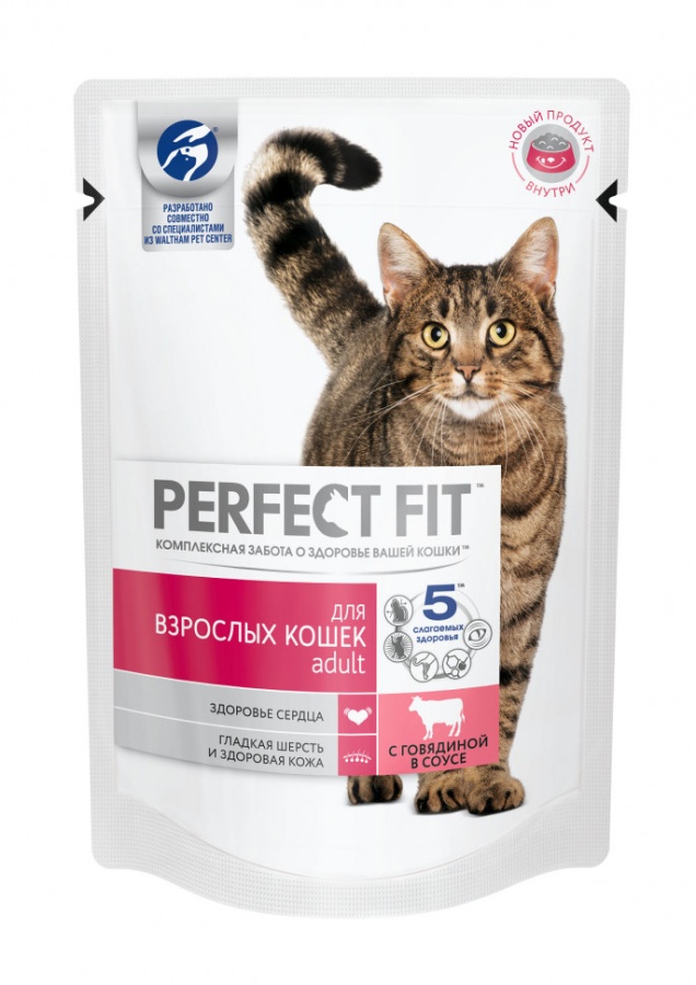 Паучи Perfect Fit Adult для взрослых кошек с говядиной в соусе - 85 г