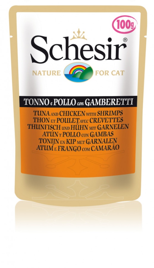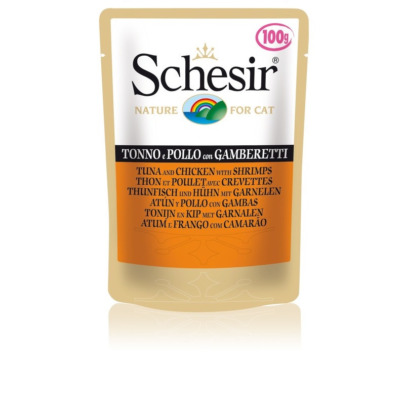 Schesir для кошек в паучах с тунцом, курицей и креветками - 100 г