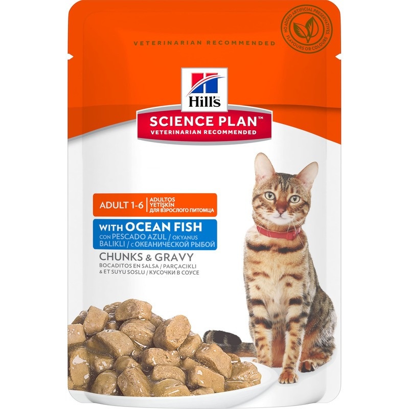 Влажный корм Hill's Science Plan для взрослых кошек для поддержания жизненной энергии и иммунитета, пауч с океанической рыбой в соусе - 85 г