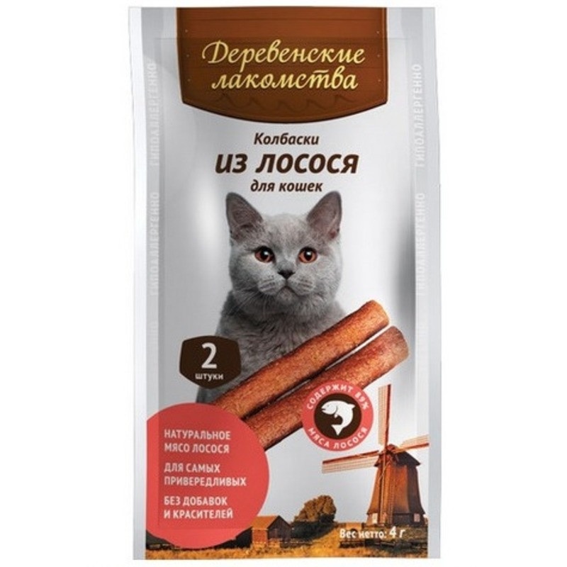 Деревенские лакомства Мясные мини колбаски из лосося для кошек 100 шт 400 г